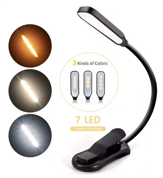 ไฟอ่านหนังสือแบบชาร์จไฟได้ไฟอ่านหนังสือ LED ขนาดเล็ก7ดวงโคมไฟแบบหนีบยืดหยุ่นสีขาวเย็นปรับได้3ระดับโคมไฟอ่านหนังสือในเวลากลางคืนบนเตียง